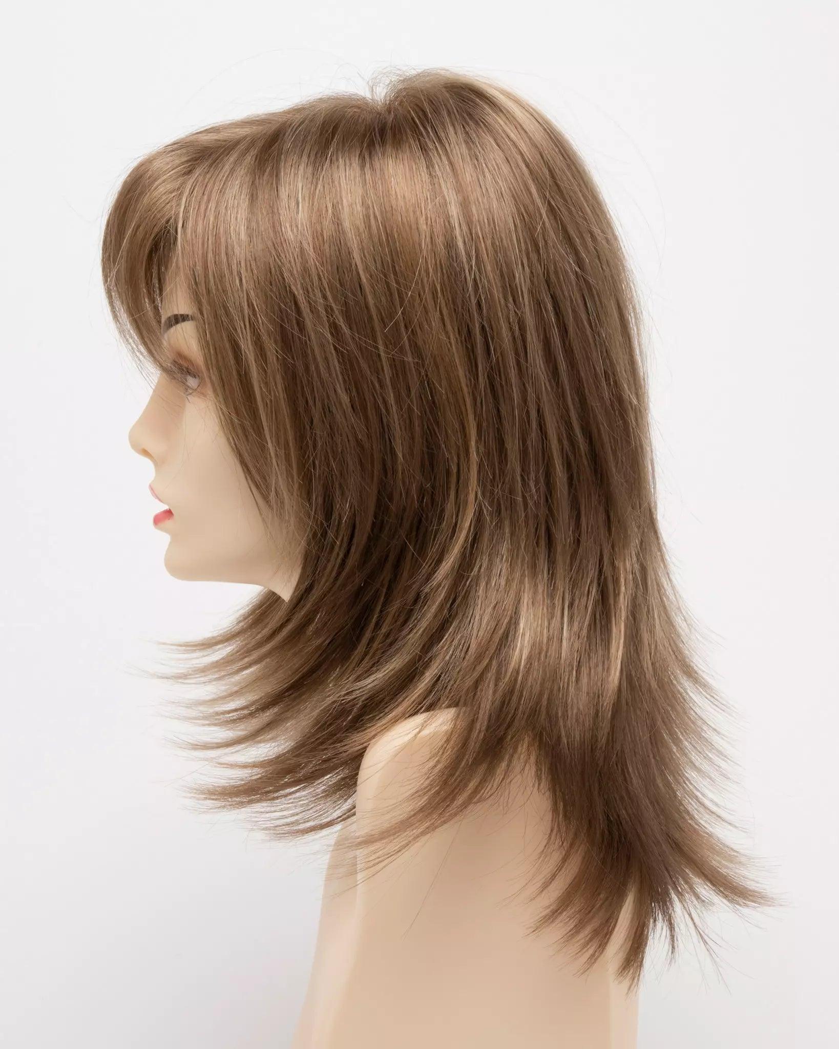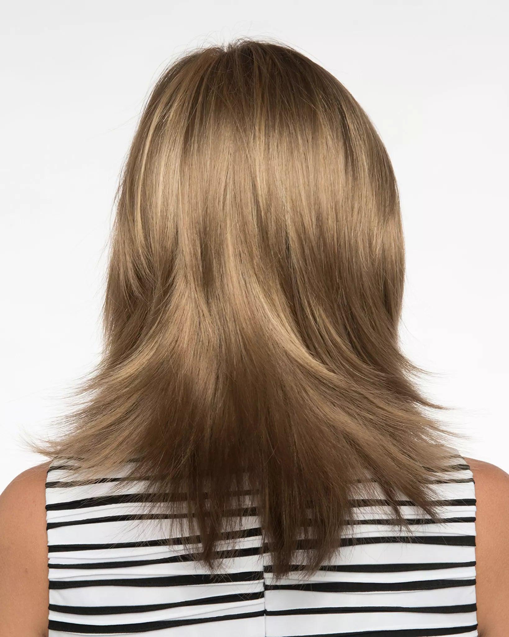 Girl next door meets modern fashion guru in this shoulder-length beauty by Envy. Featuring long, gentle layers, flared ends, and wispy, face-framing bangs, Gigi is sure to turn heads in neighborhood and nightclub, alike. The Mono Top construction allows you to wear this wig up or down, toward or away from your face, without revealing anything but impeccable style.