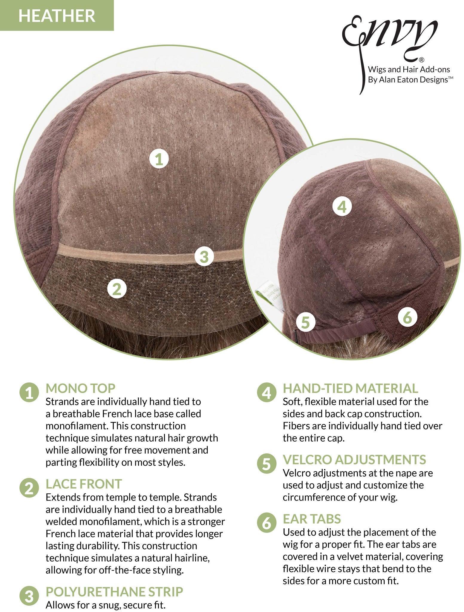 HEATHER by ENVY features the latest in heat friendly technology with a unique blend of 30% human hair / 70% synthetic that withstands temperatures up to285° Fahrenheit/120° Celsius. Brush, comb or blow day and our exclusive EnvyHair™ will maintain the feel and texture of human hair—while our Mono Top Lace Front construction and hand-tied sides and back provide an equally natural appearance. For a less constructed look, use your favorite styling cream or pomade to add some spiky texture.