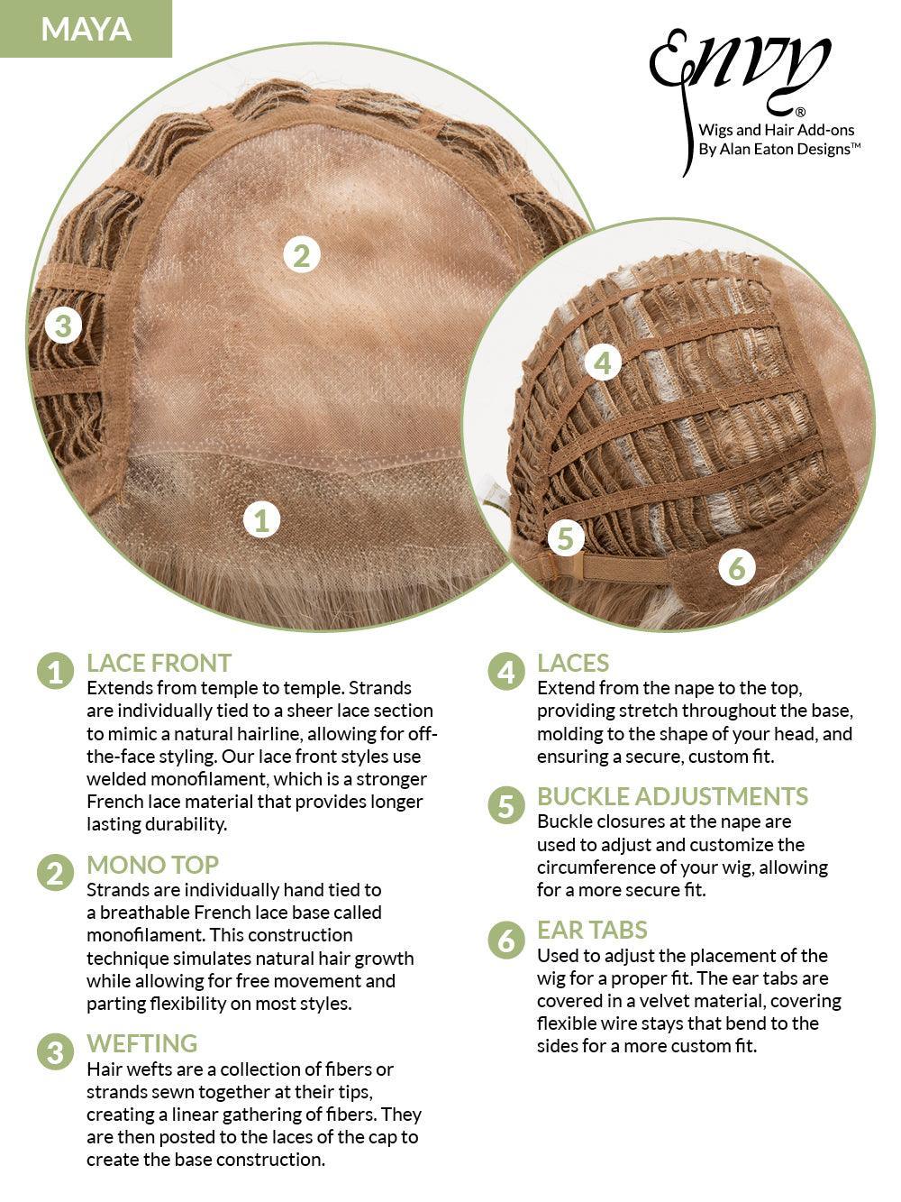This lengthy stunner will have jaws dropping with ENVY. Glossy, cascading waves perfectly frame the face, with its Lace Front Mono Top construction offering the utmost in styling versatility. Worn down or pulled back into an intricate updo—MAYA won’t give away your secret!