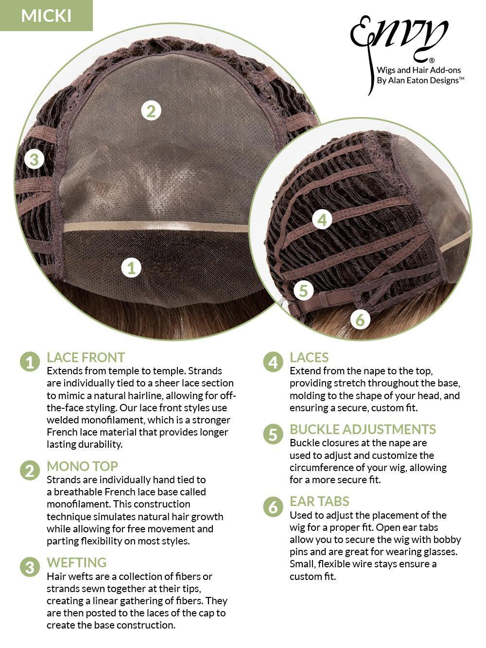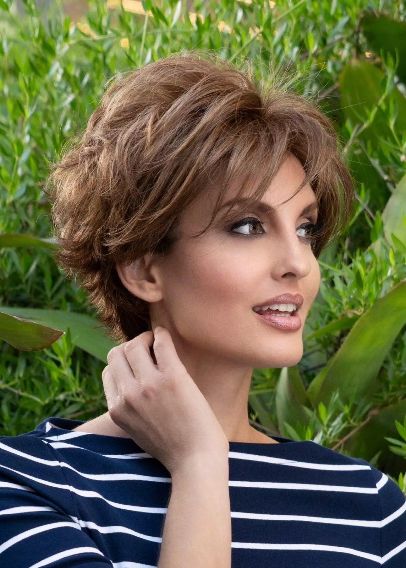 Soft layering and razor-soft edges flip out to give MICKI by ENVY its spunky textured appearance. Our lightweight Mono Top construction and superior Lace Front technology create the look of real hair growth and a perfectly invisible hairline. Style MICKI back or to the side to create your own unique hair-fashion statement.
